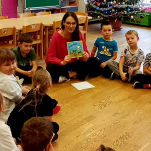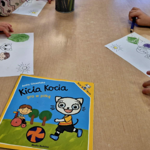 Z tej okazji nasze dzieci wysłuchały opowiadania „Kicia Kocia gra w piłkę”, w którym pojawia się Kuba – bohater poruszający się na wózku. Historia stała się punktem wyjścia do rozmowy o empatii, różnorodności i wzajemnym wspieraniu się.