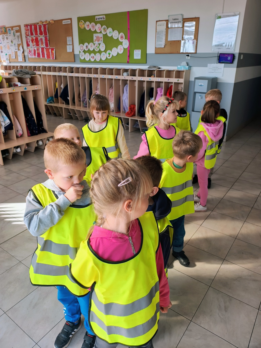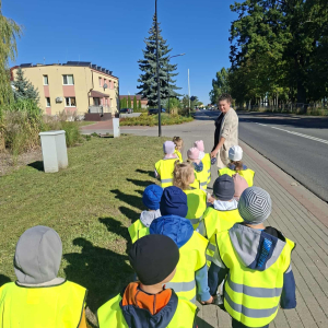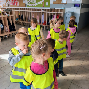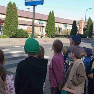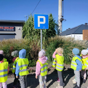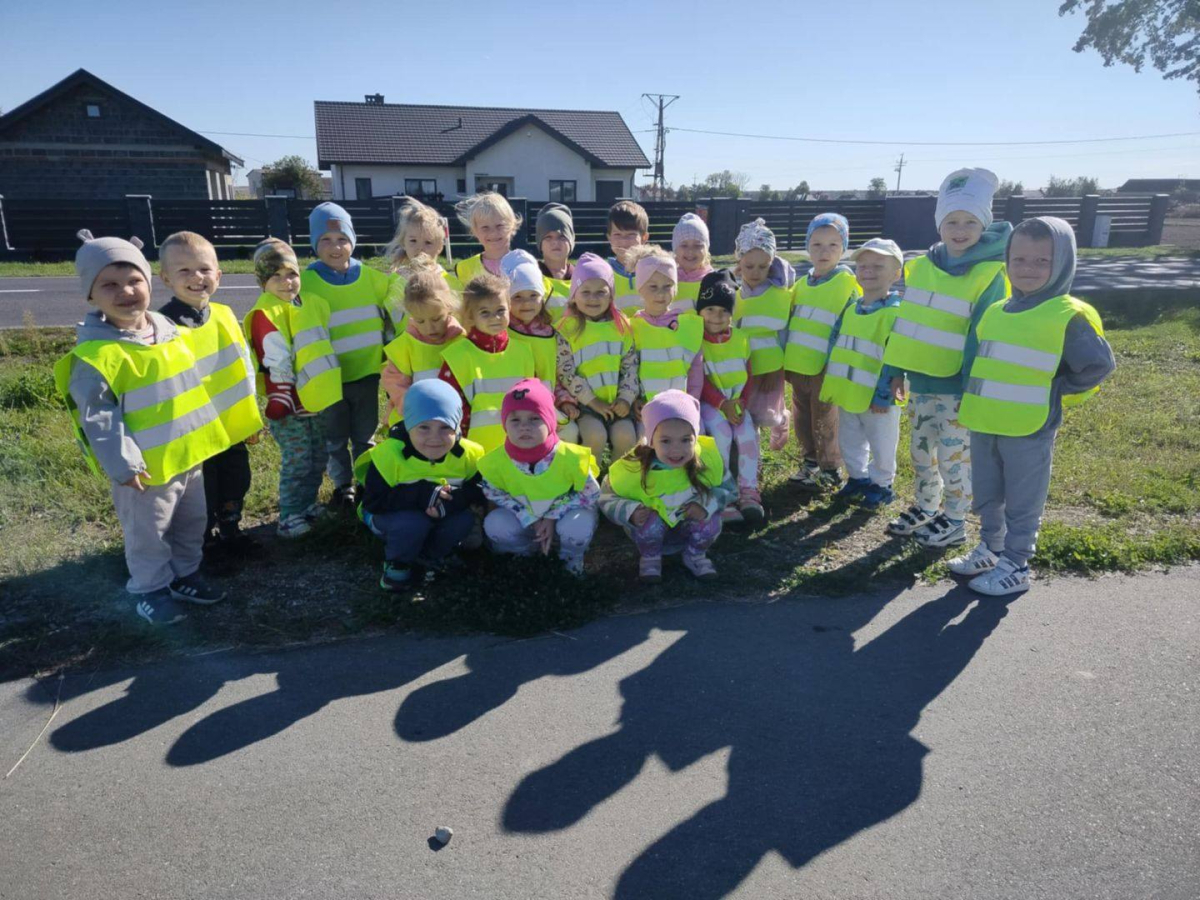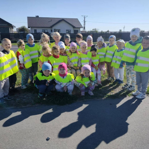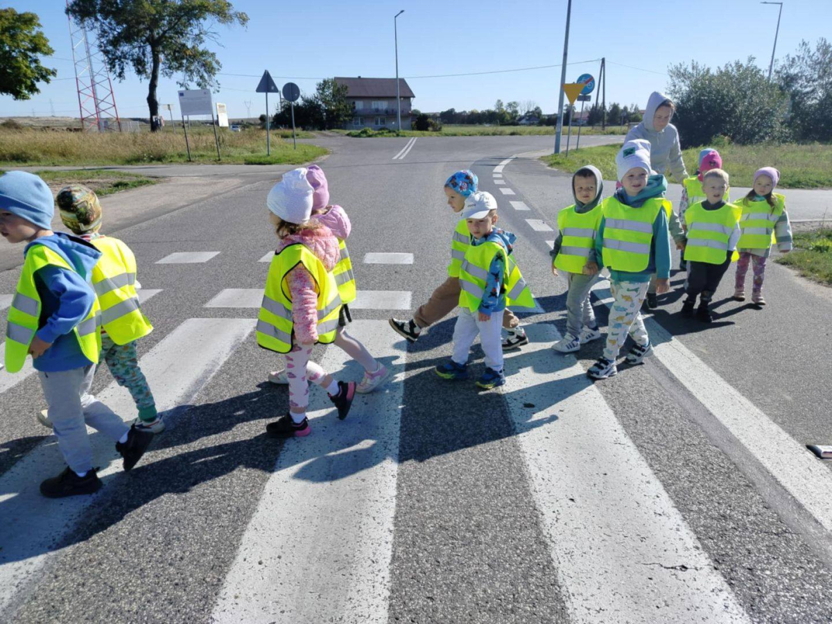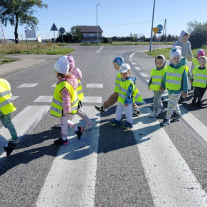 Pod opieką nauczycieli wybrały się też na wycieczkę po okolicy – obserwowały ulicę, samochody, przejścia dla pieszych i ćwiczyły poruszanie się w grupie.