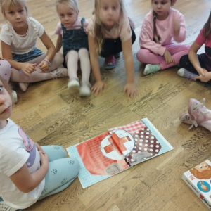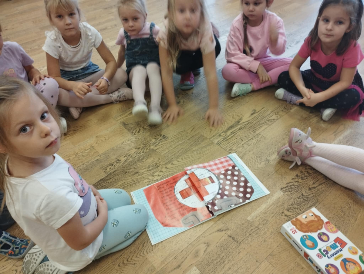 Na początku zapoznaliśmy się z historią Niny - bohaterki książeczki "Kolorowy Potwór - Doktor od emocji", by następnie dyskutowaliśmy o najlepszych sposobach radzenia sobie ze smutkiem, złością oraz strachem.
