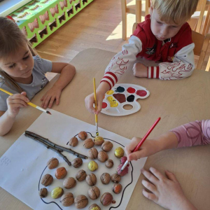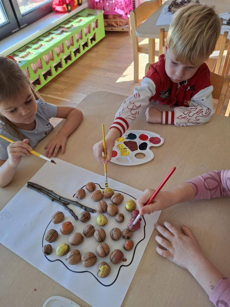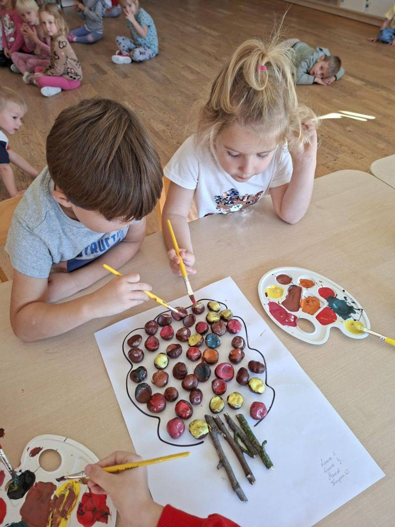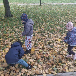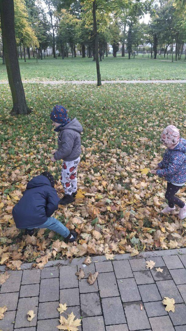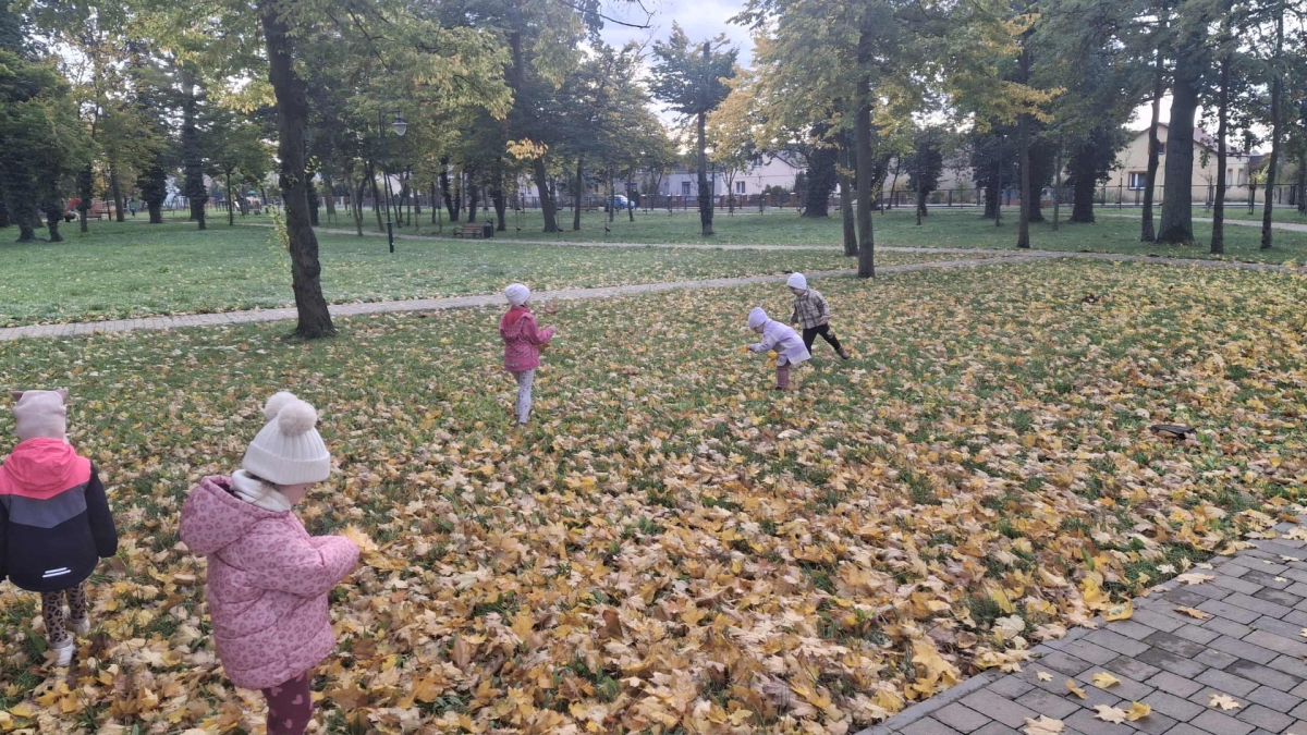 Jesień to piękna i kolorowa pora roku. Podczas spacerów dzieci, tym razem z grupy Misiów, obserwują zmiany w przyrodzie, zbierają liście, kasztany i żołędzie.