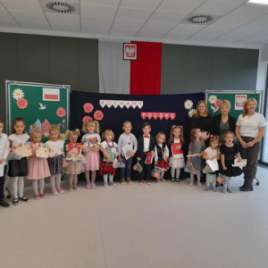 Ponadto z okazji obchodów Święta Niepodległości nasze przedszkole wzięło udział w ogólnopolskim konkursie „Do hymnu z Ministerstwem Sprawiedliwości”. Celem przedsięwzięcia było m.in. propagowanie postaw patriotycznych, kształtowanie szacunku do symboli narodowych, a także motywowanie dzieci do występów publicznych i wspieranie ich działań twórczych. Jak podaje Ministerstwo Sprawiedliwości, w konkursie uczestniczyło ponad 27 tysięcy dzieci z całej Polski. Choć zgłoszone przez nasze przedszkole nagranie nie znalazło się w gronie laureatów, jesteśmy niezwykle dumni z pięknego wykonania „Mazurka Dąbrowskiego” przez naszych przedszkolaków. To wyjątkowe doświadczenie, które na długo pozostanie w naszej pamięci!