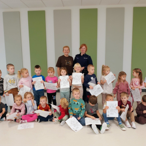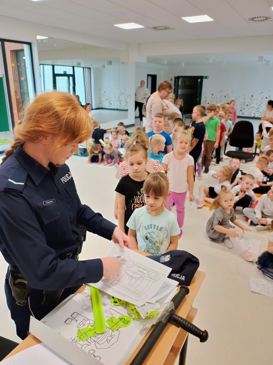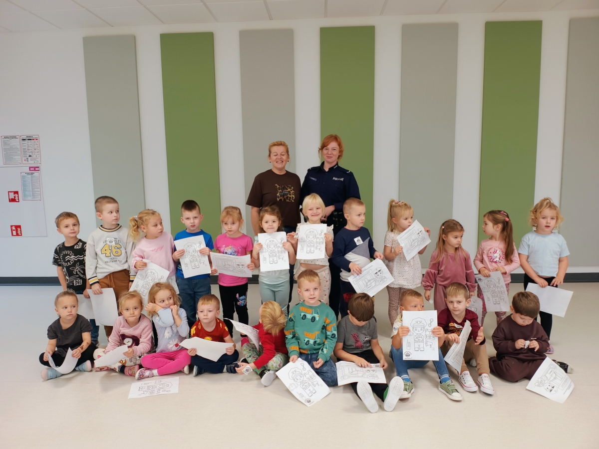 Dzieci przypomniały sobie, jak ważne jest przestrzeganie zasad ruchu drogowego, noszenie elementów odblaskowych oraz zachowanie ostrożności podczas spacerów i przechodzenia przez jezdnię.