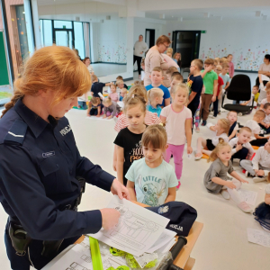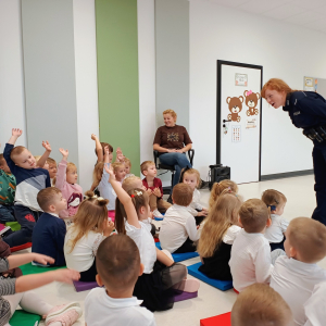 30 października nasze przedszkole odwiedziła Pani Sierżant Daria Bąkowska z Komisariatu Policji w Sompolnie, która przeprowadziła bardzo ciekawe zajęcia o bezpieczeństwie na drodze.