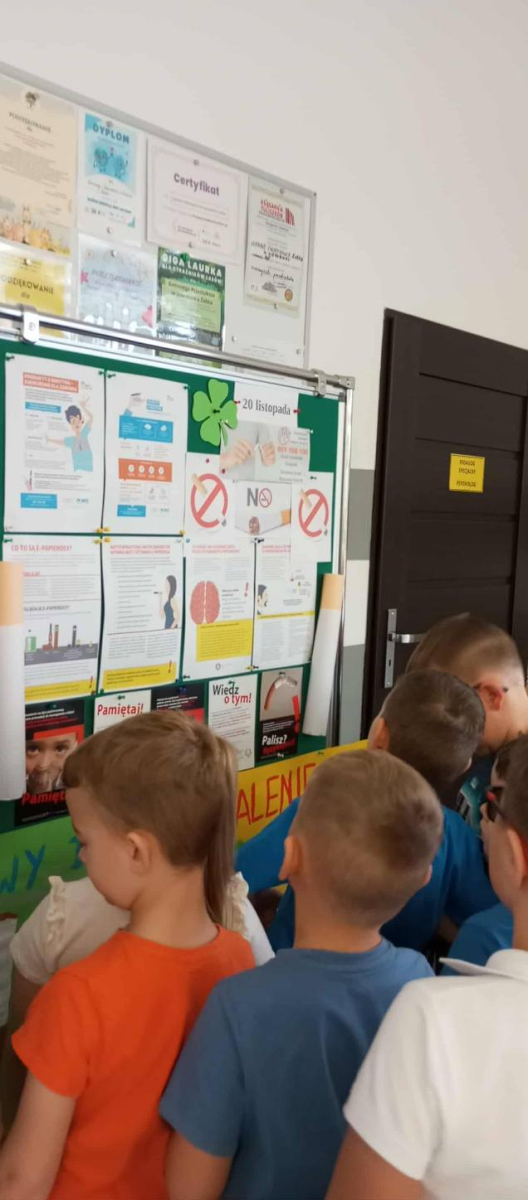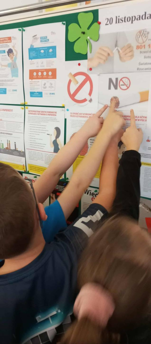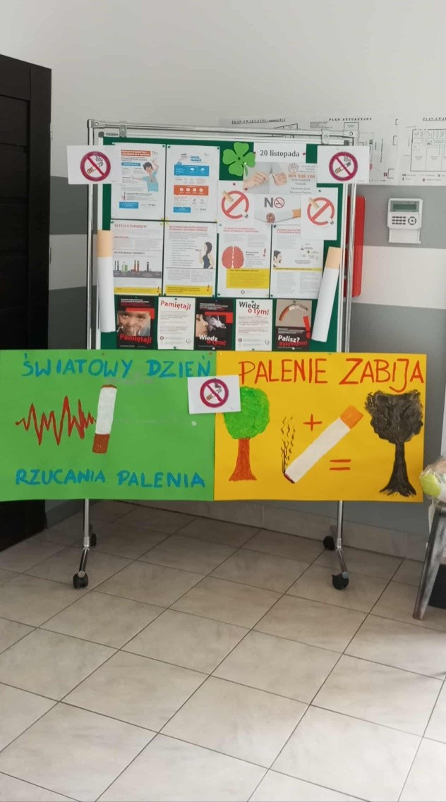 Do akcji aktywnie włączyli się również rodzice, którzy 19 listopada podczas zebrania wysłuchali krótkiej prelekcji o zagrożeniach wynikających z kontaktu z dymem tytoniowym oraz sami przygotowali tematyczne plakaty.