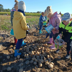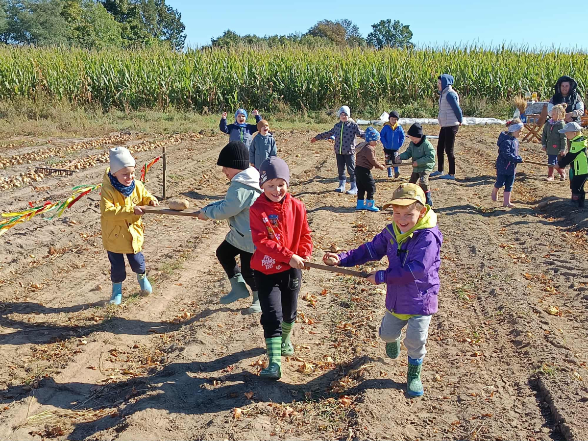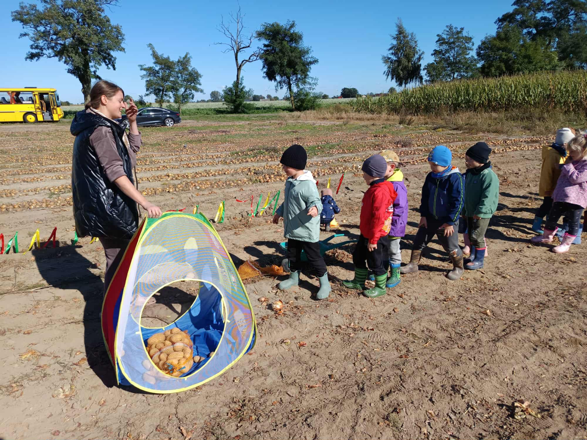 Dzieci miały niepowtarzalną okazję zobaczyć, jak wygląda praca na roli, spróbować własnoręcznie zebrać ziemniaki oraz poznać uroki życia na wsi.