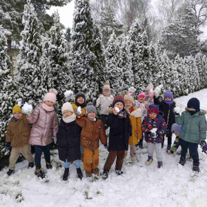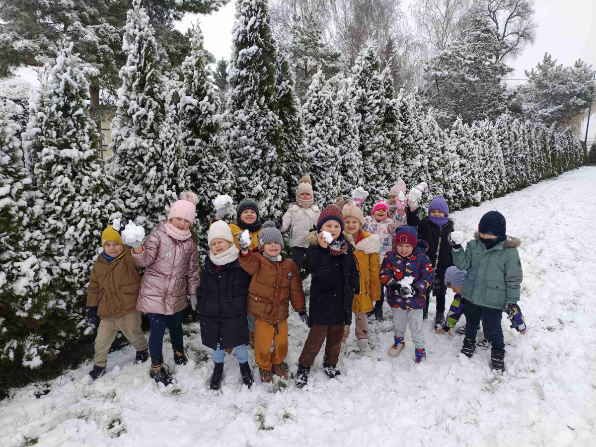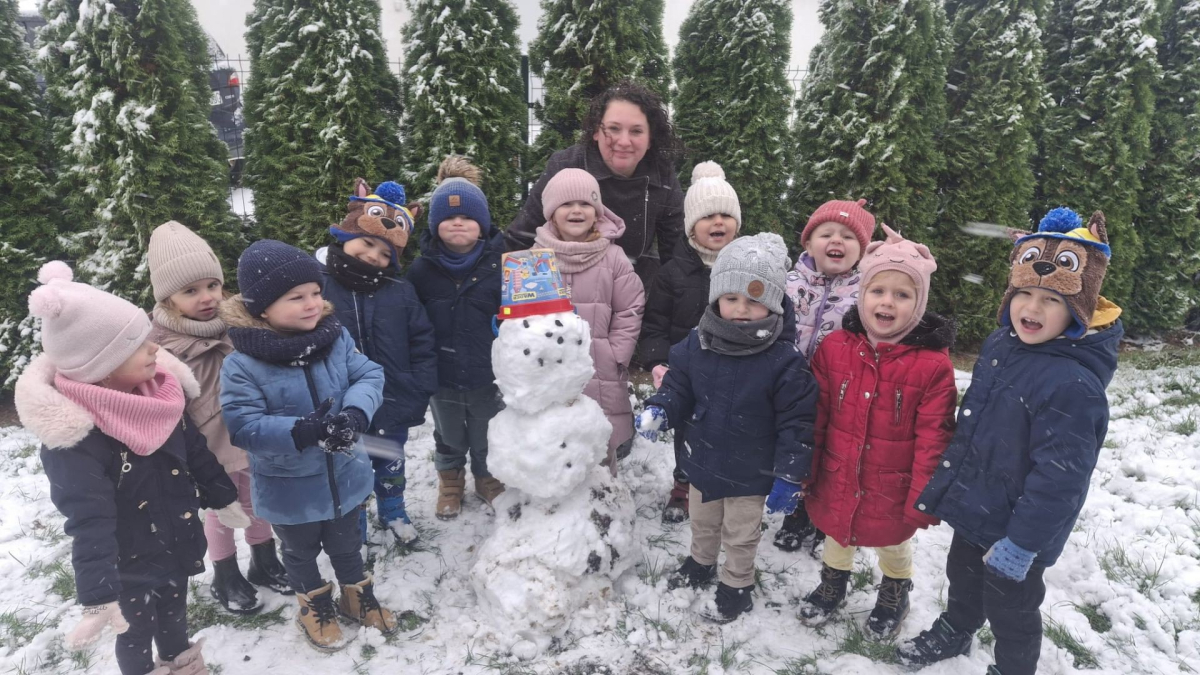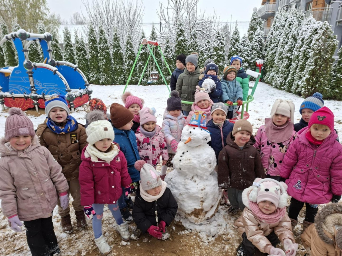 Dziś przedszkolaki w pełni wykorzystały zimową aurę — były bitwy na śnieżki, lepienie bałwanów i mnóstwo radosnego śmiechu.
