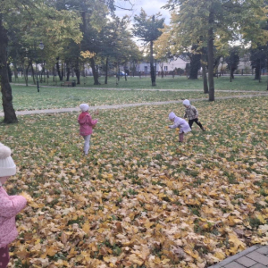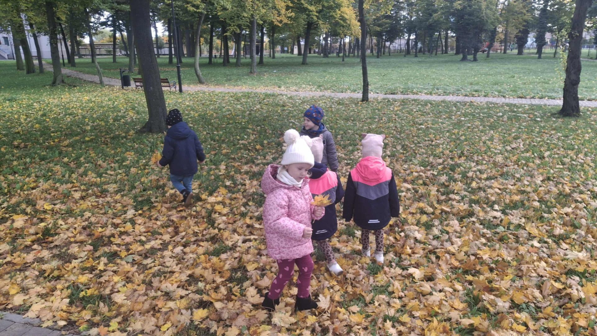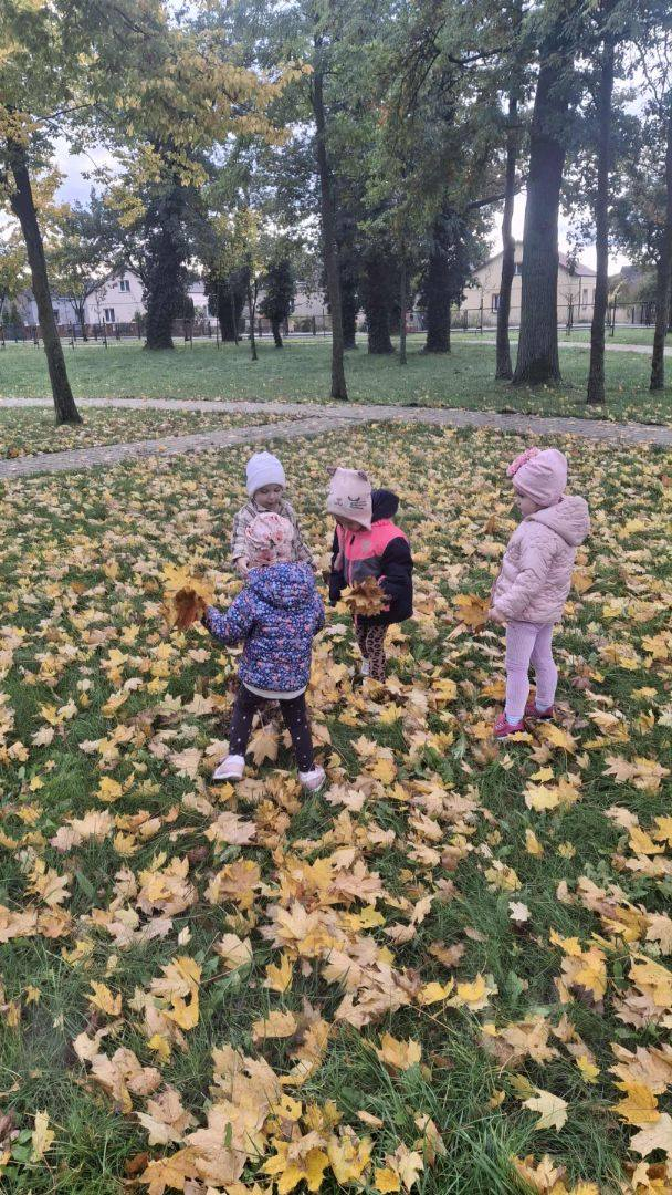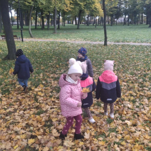 Jesień to piękna i kolorowa pora roku. Podczas spacerów dzieci, tym razem z grupy Misiów, obserwują zmiany w przyrodzie, zbierają liście, kasztany i żołędzie.