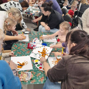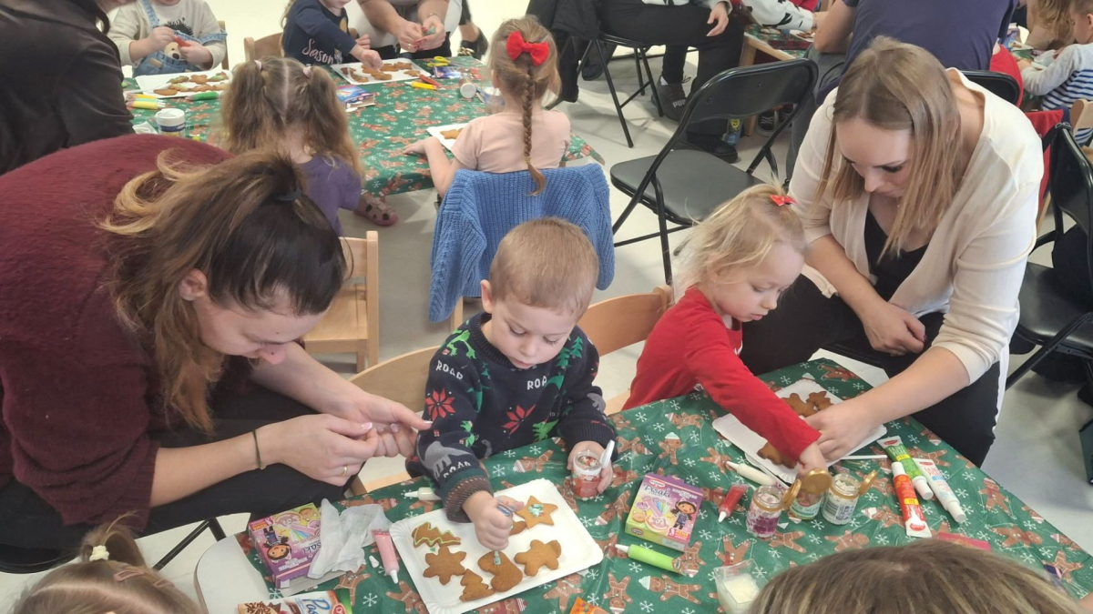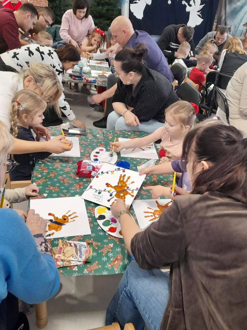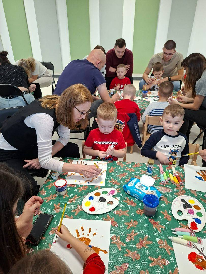 Dzieci, wspierane przez zaangażowanych rodziców i dziadków, wzięły udział w radosnych warsztatach. Ten wspólnie spędzony czas obfitował w gwar, śmiech i twórczą pracę, której efektem są przepiękne, własnoręcznie wykonane pamiątki: bombki, pachnące pierniczki oraz wyjątkowe kartki świąteczne.