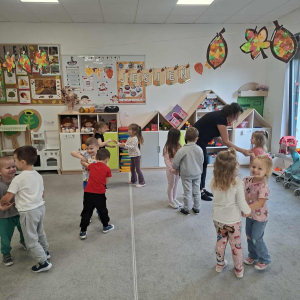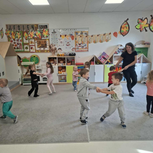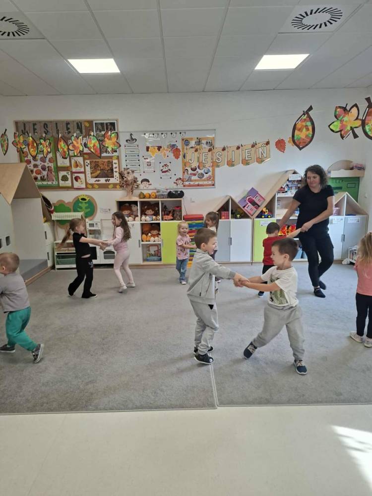 W grupie Misiów, i nie tylko, odbywają się zajęcia rytmiczno-ruchowe, podczas których dzieci rozwijały poczucie rytmu, koordynację ruchową oraz słuch muzyczny.